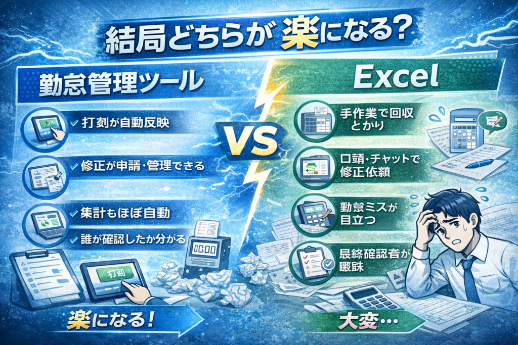 - 勤怠管理ツールは結局どこが楽?Excelとの違いを徹底比較